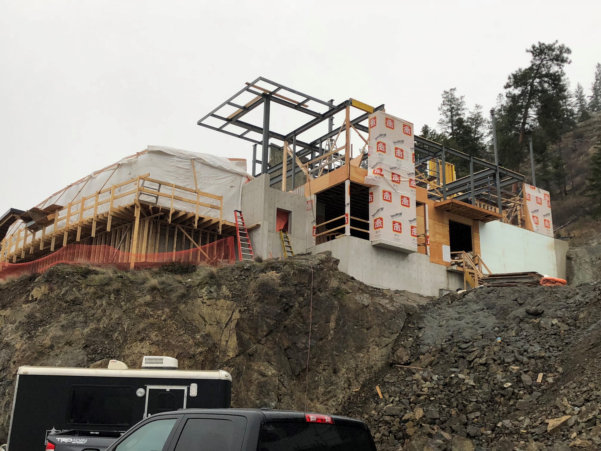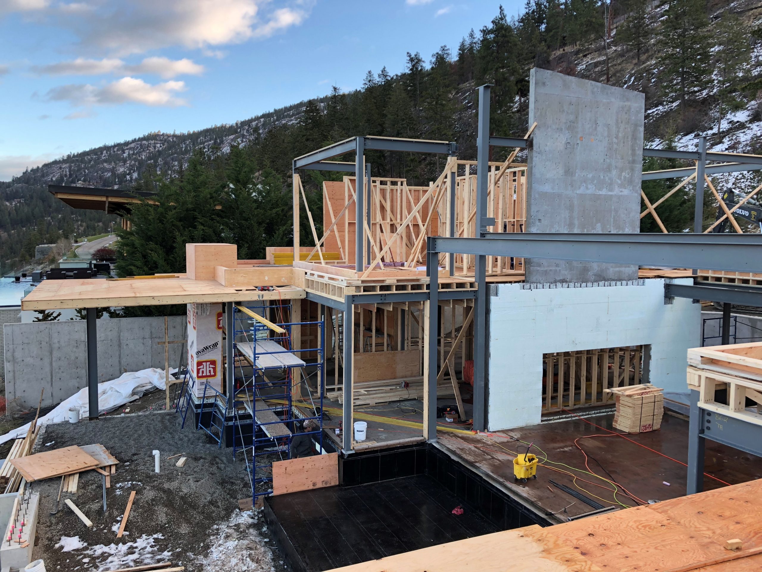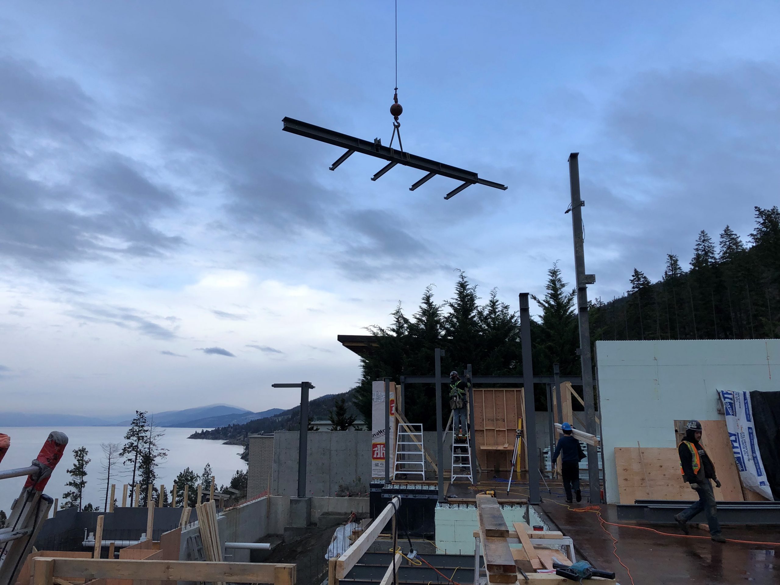 Structural steel supply and installation for a beautiful multi-level custom home done by Timberhaven Homes. Showing once again that structural steel is the preferred choice for large-span support in residential applications.